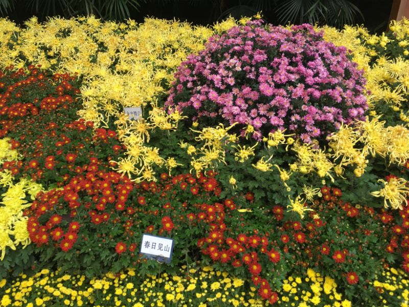 展览共布置花卉万余盆,展示精品菊约90个品种,塔菊、小立菊、菊球、什锦菊、卧龙菊、盘⻰菊、孔雀菊、悬崖菊、菊花盆景等各式造型菊千余盆。